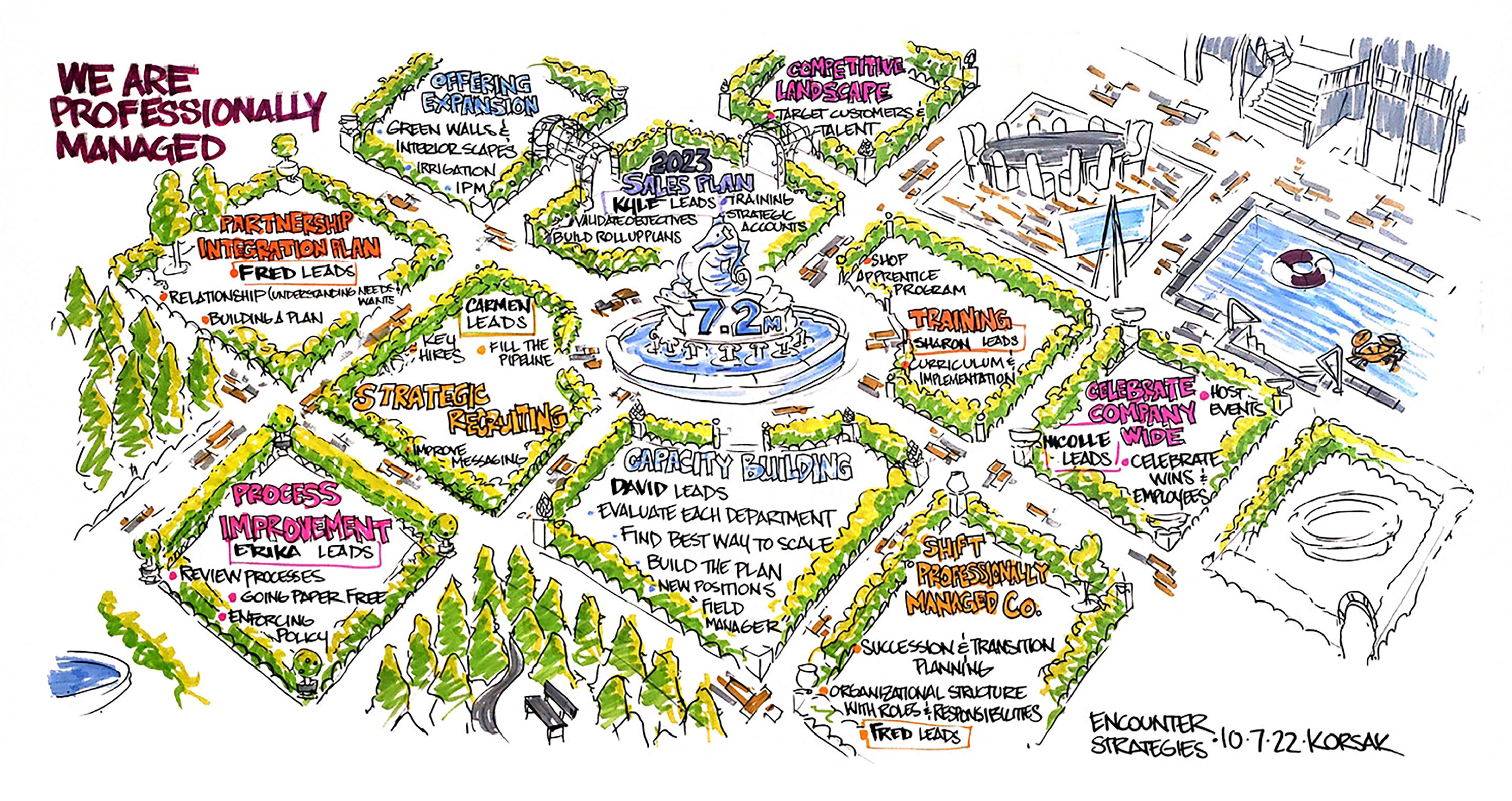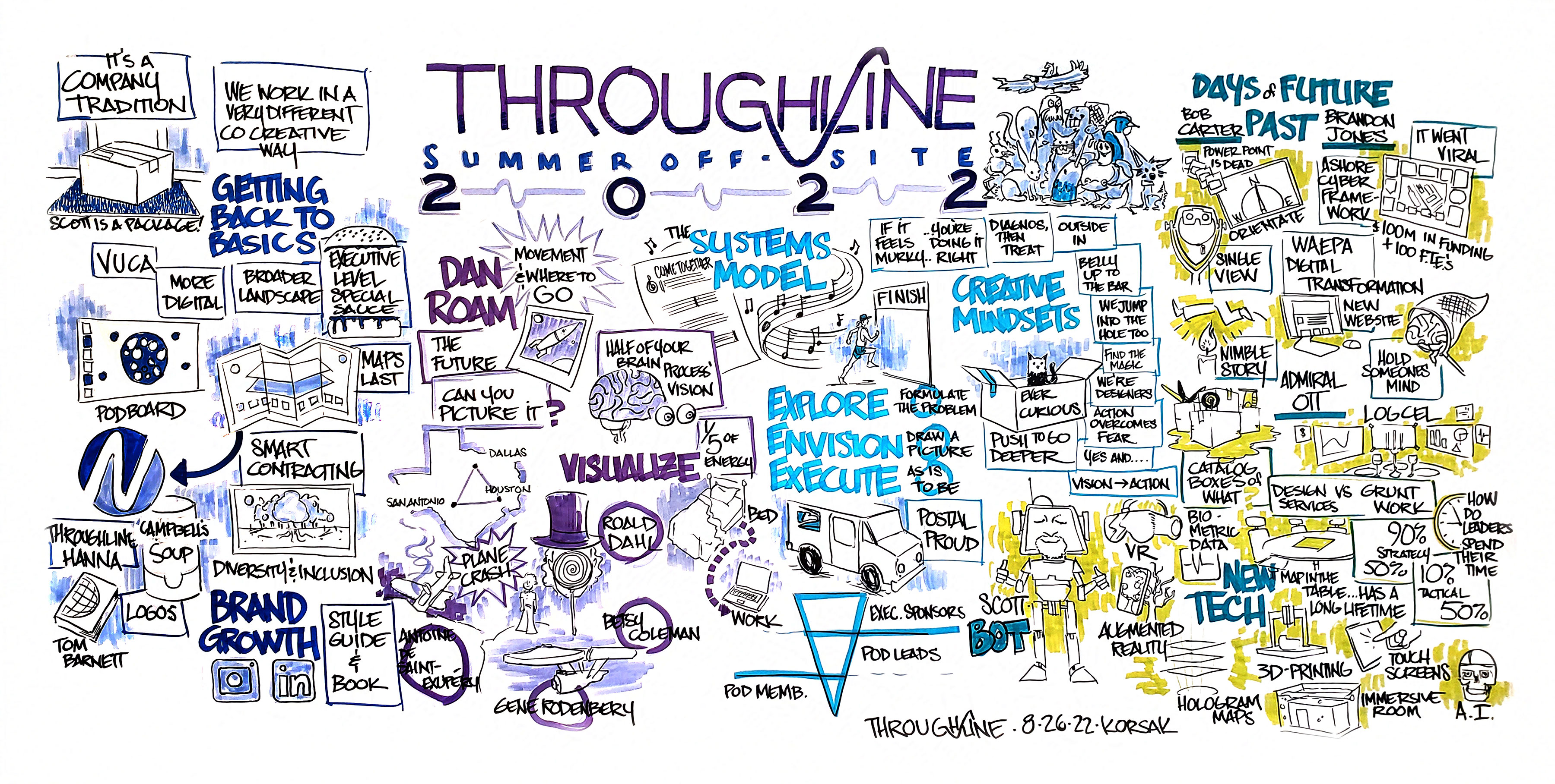Mark Korsak’s knack for creative thinking and long-term commitment to the art of graphic recording can level up your firm’s strategic planning sessions into genuine meetings of the minds.