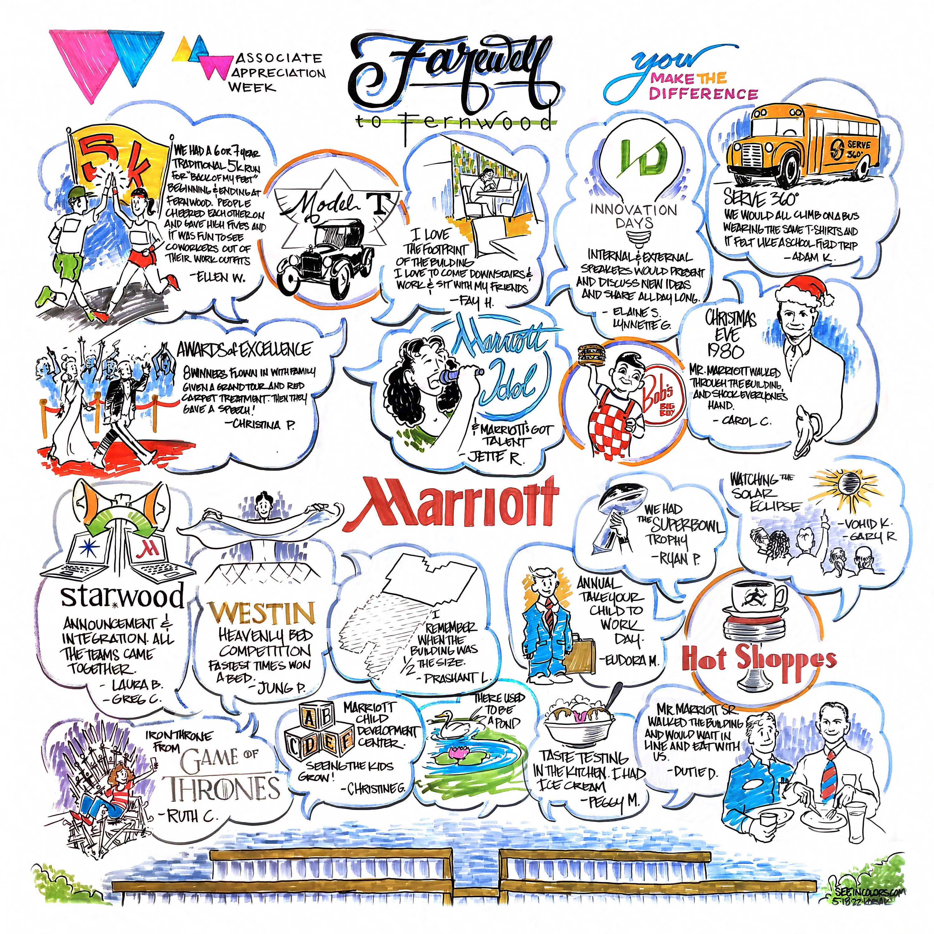 The complex web of words and pictures that Mark creates becomes more than the sum of its parts. It’s your team’s collective creativity, permanently manifested in the real world. You don’t just get your planning meeting fed back to you. Mark captures not just the ideas on display but your team’s spirit and culture that permeates and colors it all.